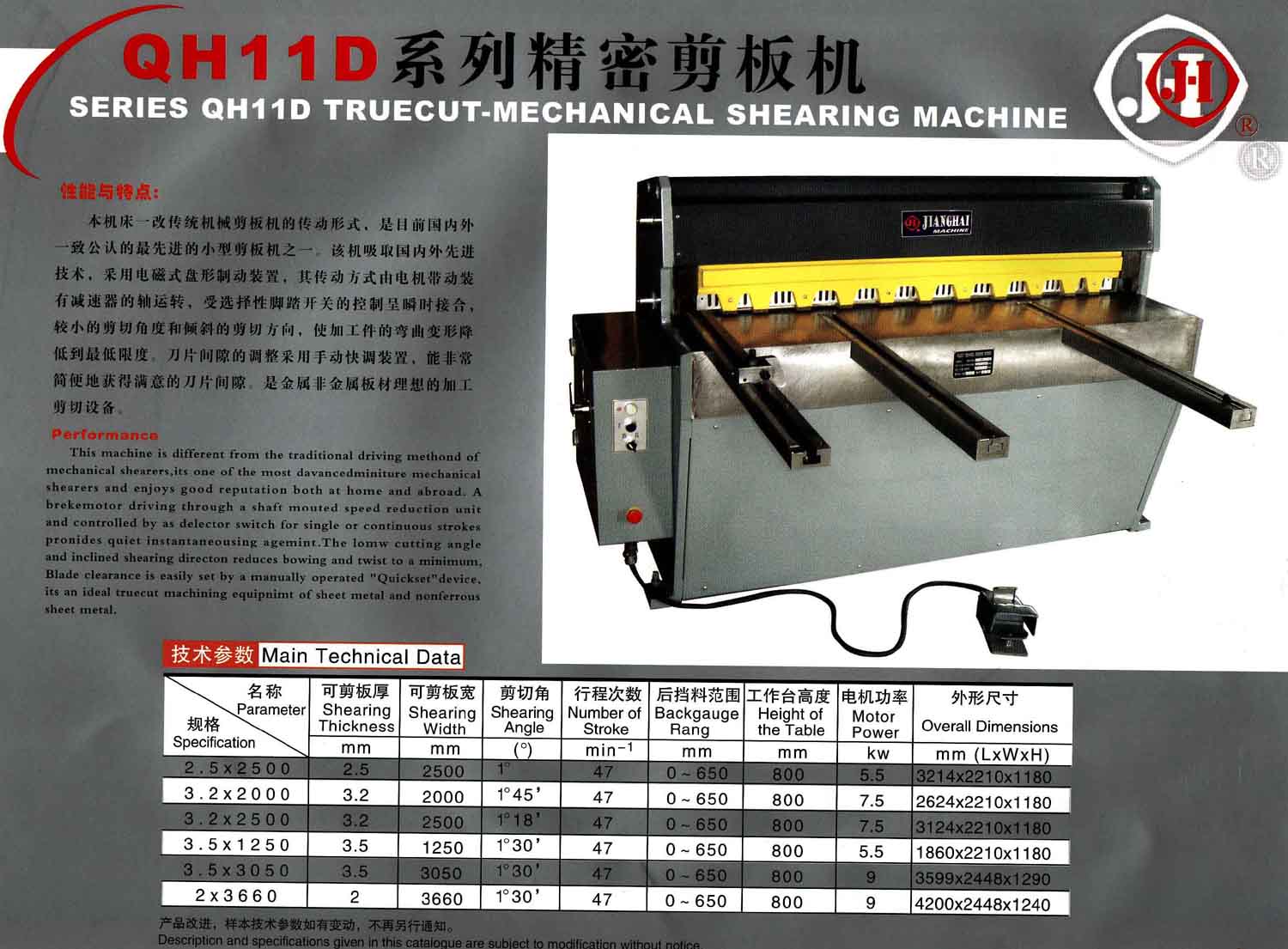 This machine is different from the traditional driving methond of mechanical shcarers,its one of the most davancedminiture mechanical shearers and enjoys good reputation both at home and abroad.A brekemotor driving through a shaft mouted speed reduction unit and controlled by as delector switch for single or continuous strokes pronides quiet instantaneousing agemint.The lomw cutting angle and inclined shearing directon reduces bowing and twist to a minimum,Blade clearance is easily set by a manually operared"Quickset"device,its an ideal truecut machining equipnimt of sheet metal and nonferrous sheet metal. |