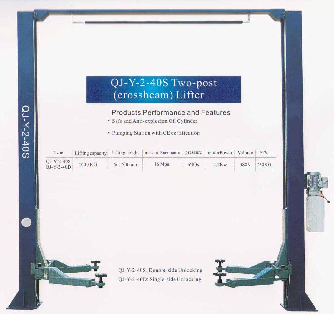 Two-post lifts with crossbeam(Manual Single-side Unlocking)