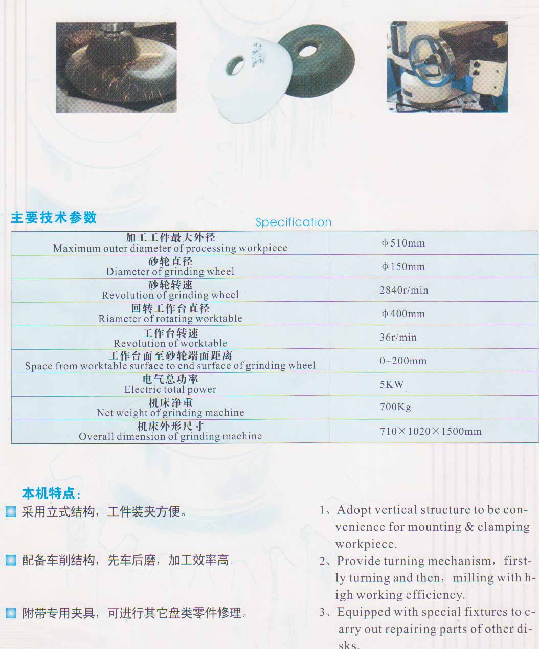 4. Dia. of grinding wheel: Φ150mm