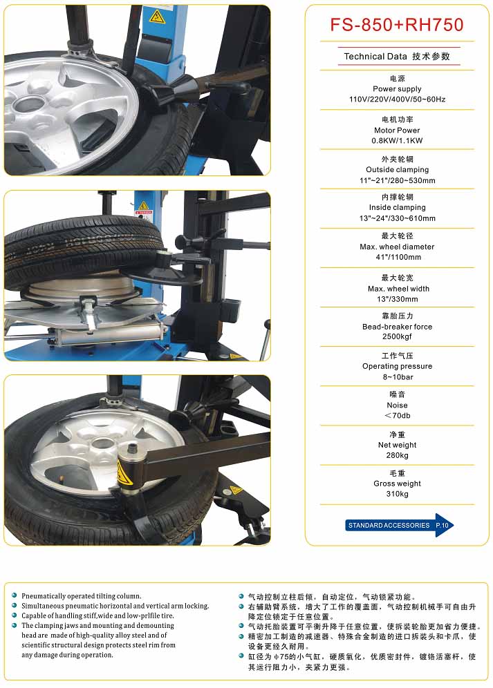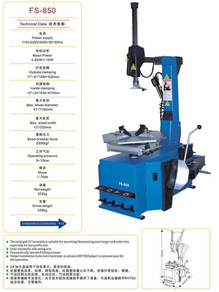 The enlarged 24"turntable is suitable for mounting/demounting more larger and wider tire, especially for low profile tire.