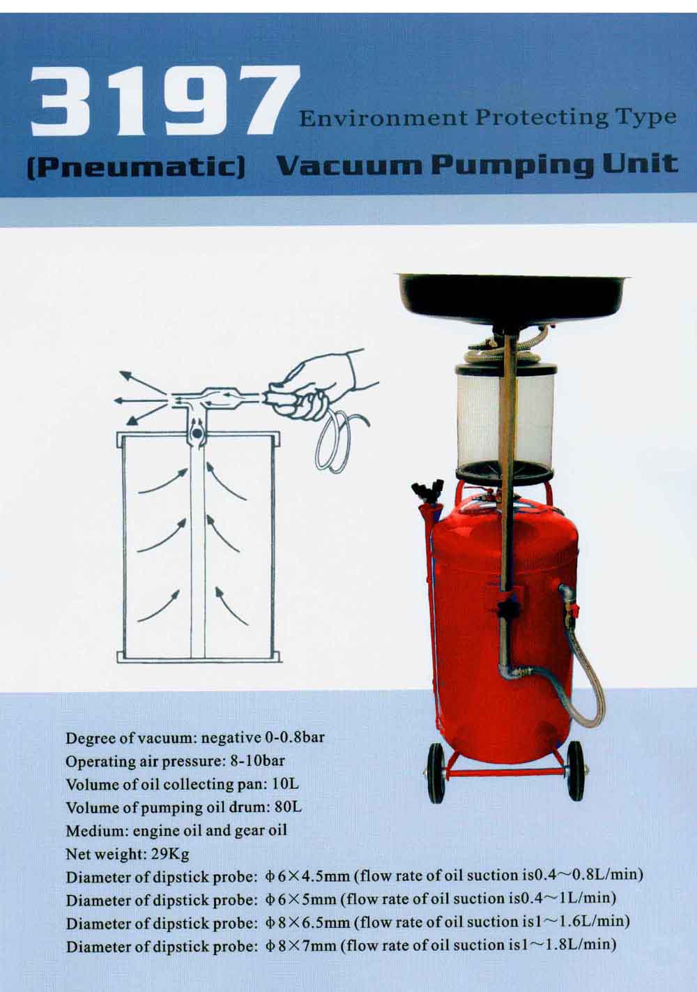 Vacuum degree:0-0.8Bar; Air pressure:8-10Bar;  Oil tank capacity:80L